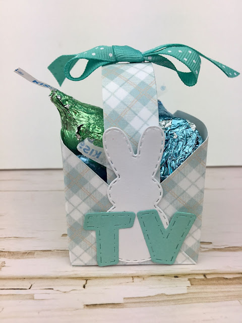 I personalize each basket with a little bunny diecut and their initials in matching papers.