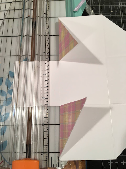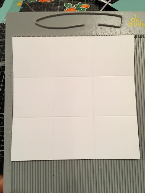 Step 1: Pick out your 6x6 paper and score the paper at 2" and 4", turn your cardstock, and repeat.