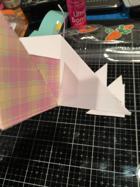 I made two baskets, one for my niece Annie (girl bunny, pink paper) and one for my nephew, Thomas (boy bunny, blue paper)
