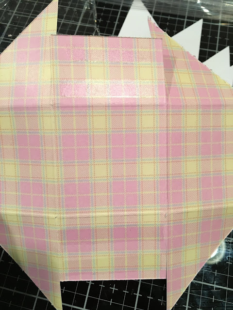 Step 5: Add adhesive to the inside of the other criss cross flaps and adhere them on top of the first ones to create the basket.