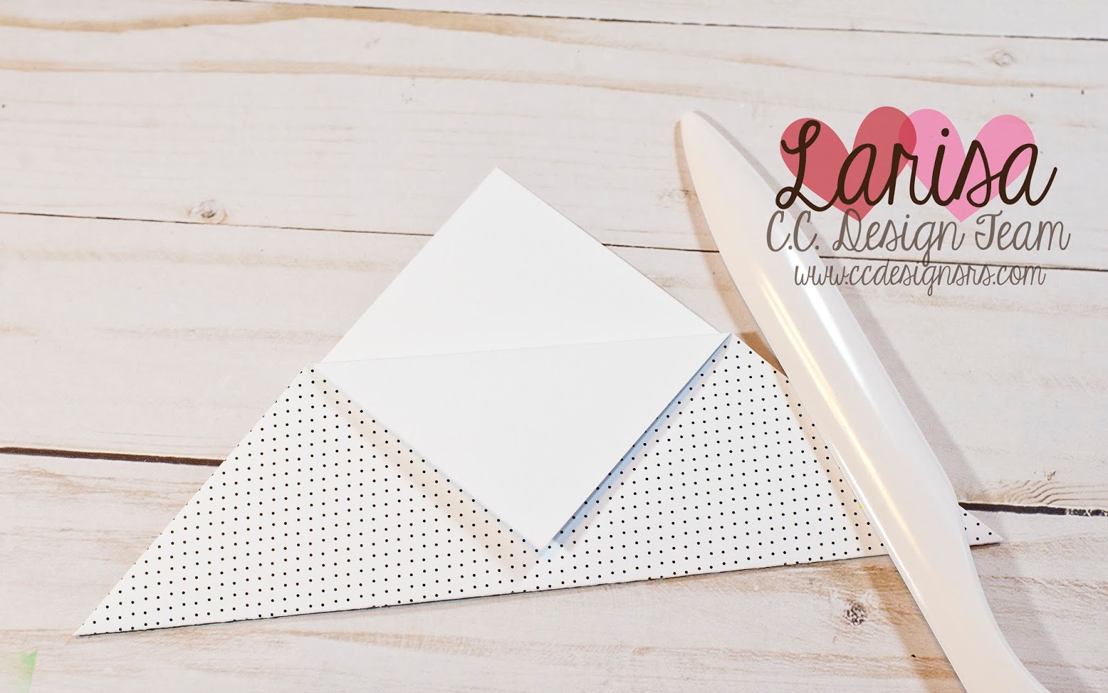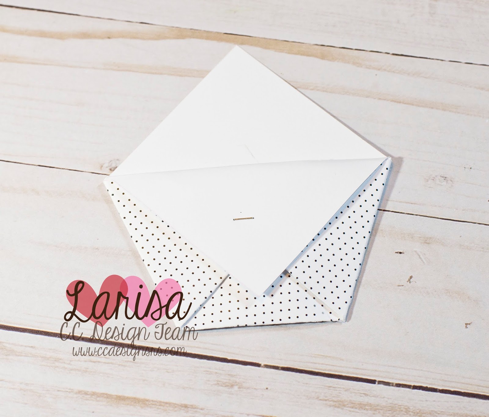 Hello! Larisa her and I am so excited to share a fun tutorial using the NEW CC Designs Patterned Paper! With just a single sheet of 6X6 paper, you can create a cute little gift card/treat holder envelope!