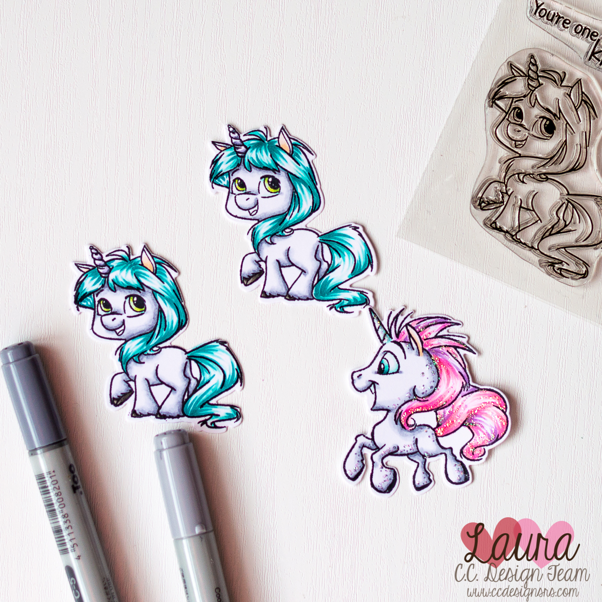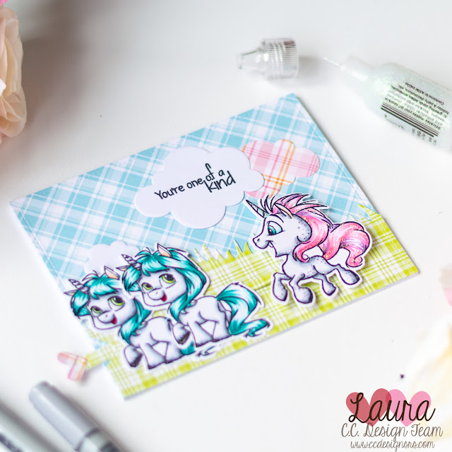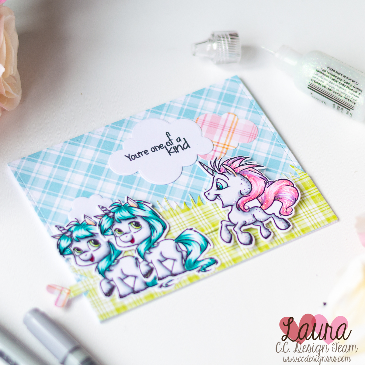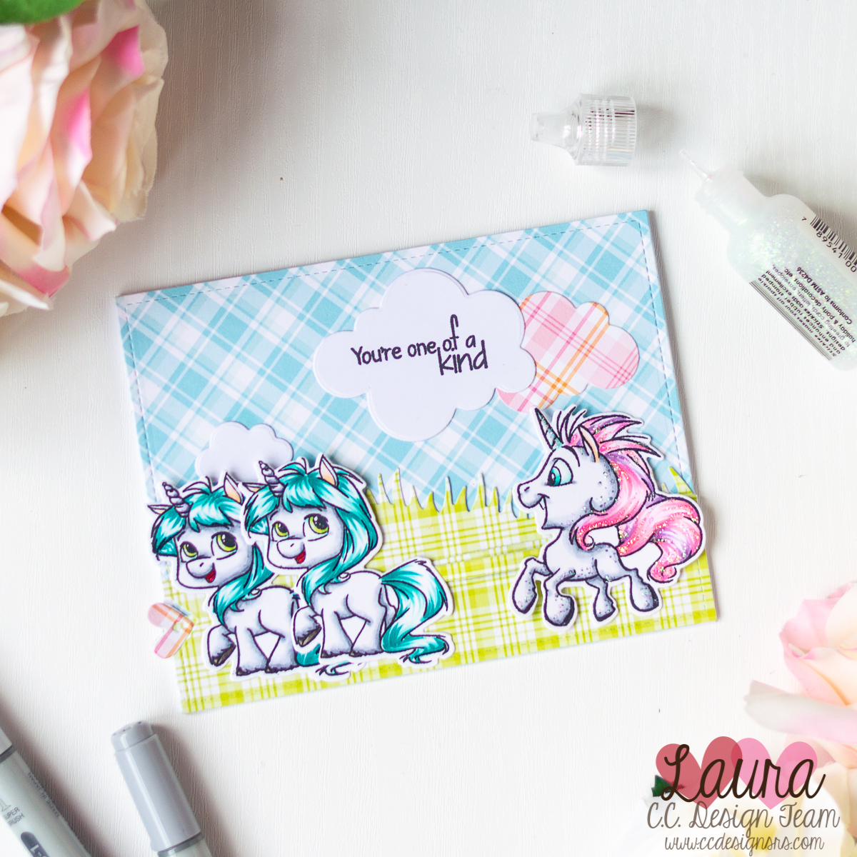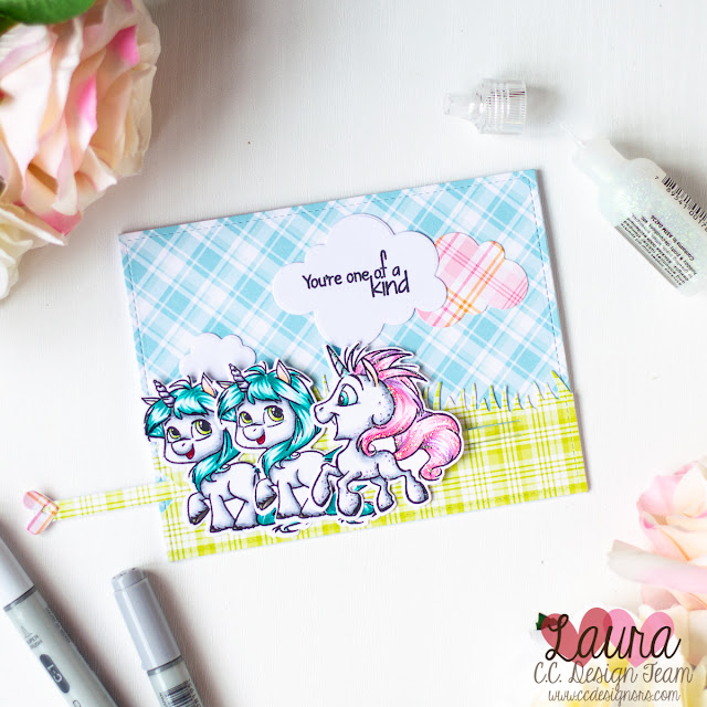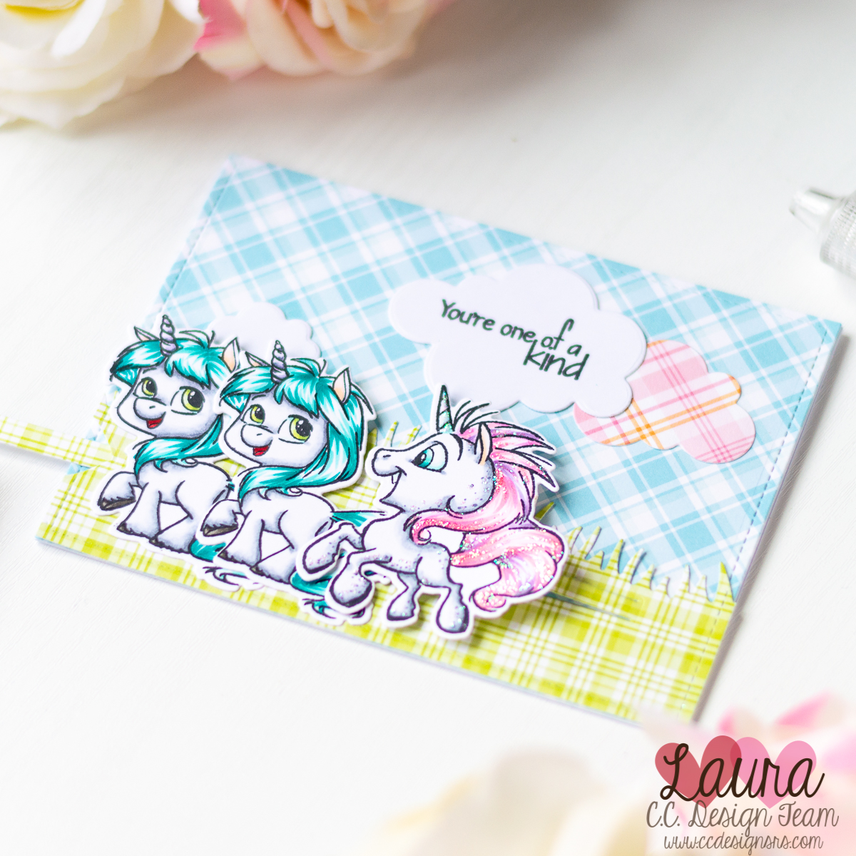 Hi everyone! It's Laura here, and today I am back with an interactive card I created with the C.C. Designs Pull Tab Cutter Die and the newly released Unicorns.