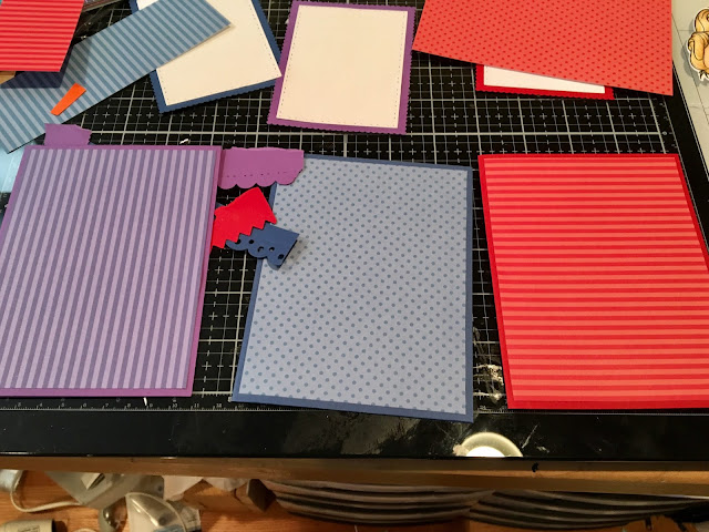 Step #4: Cut a 2 inch stripe in a different patterned paper than your panel and adhere both your decorative border die and patterned paper stripe to your base horizontally. Trim the edges.