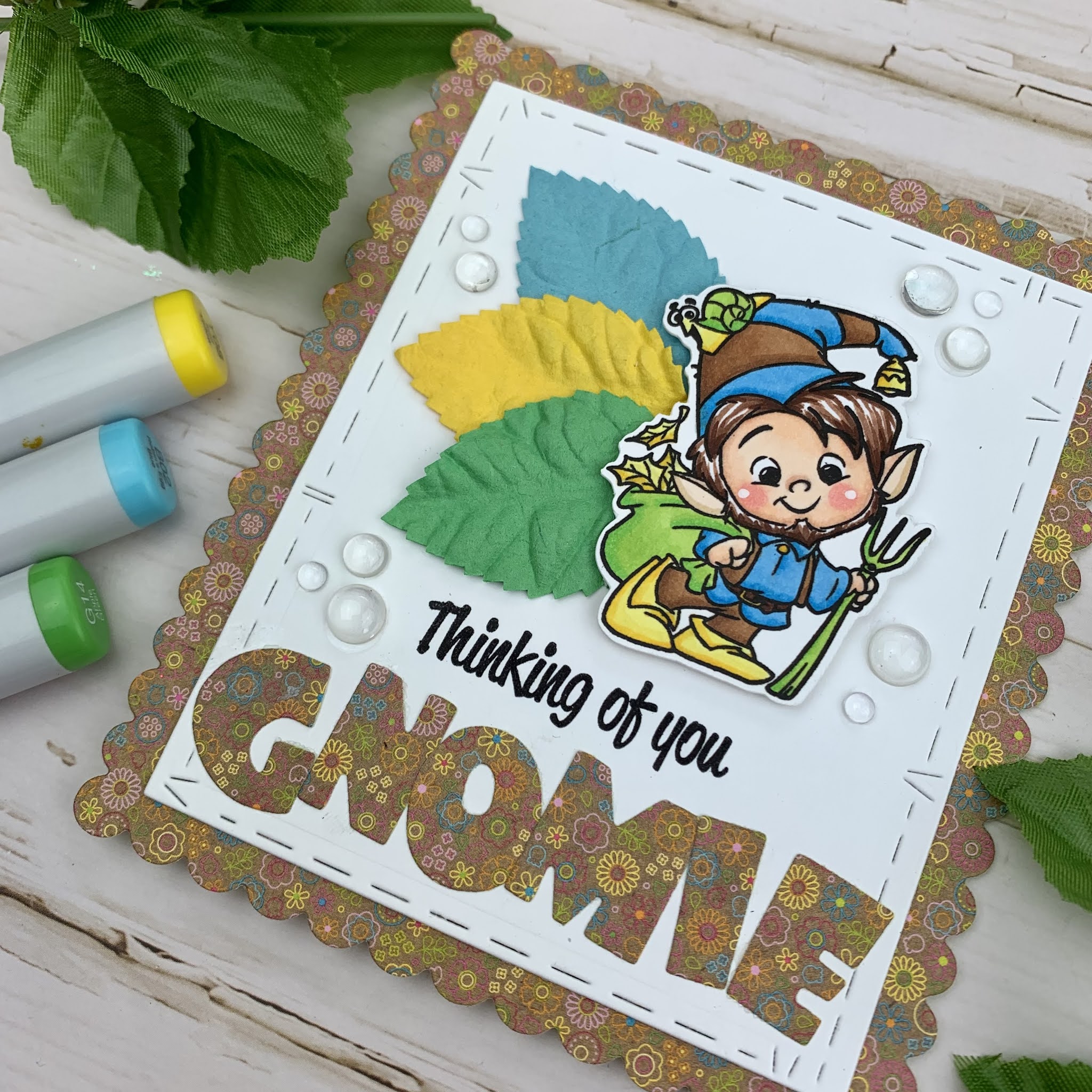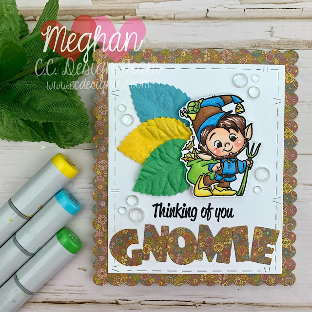 I am sharing Gnome card using Gnome Friends from C.C Designs to inspire you to join the C.C Designs Facebook Challenge. The challenge theme is Anything Goes using at least ONE C.C Designs product. Join the Facebook group and enter for your chance to win a $15 gift certificate to the store.
