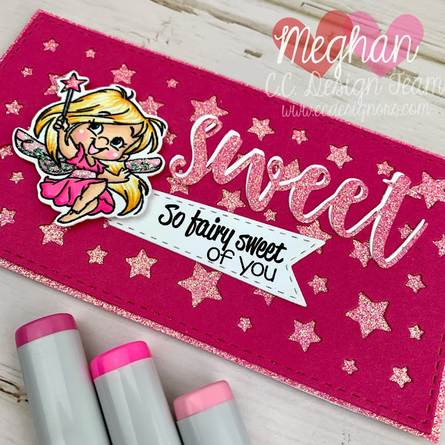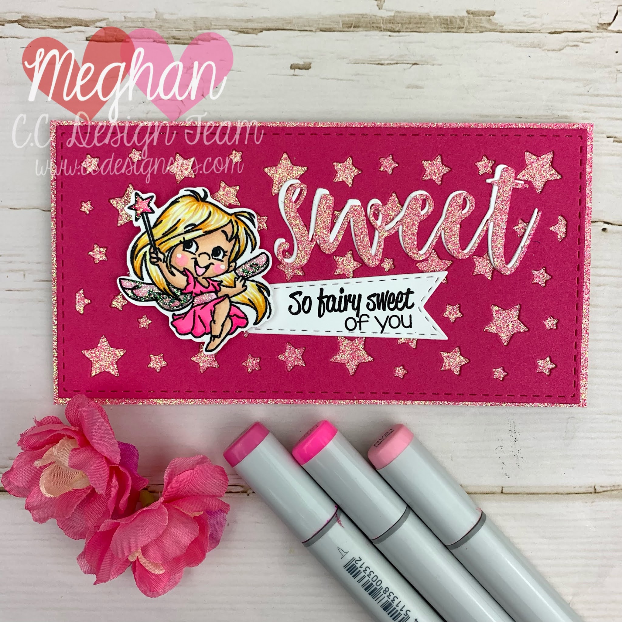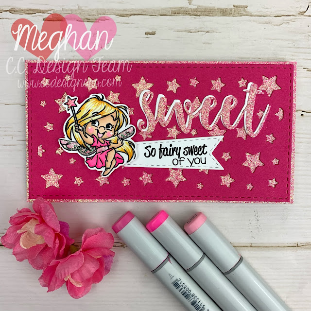 I am sharing a fun fairy card using Fairy Friends from C.C Designs to inspire you to join the C.C Designs Facebook Challenge. The challenge theme for September is Monochrome. Join the Facebook group and enter for your chance to win a $15 gift certificate to the store.