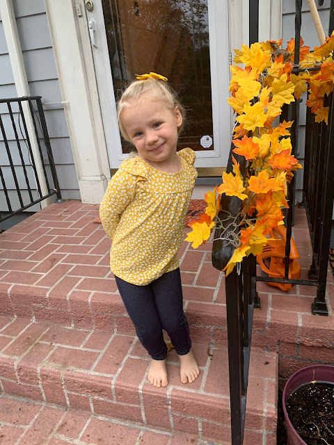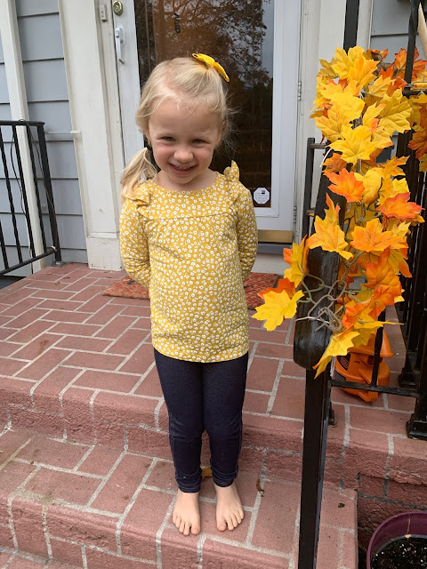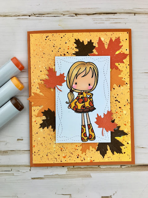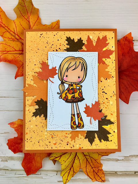 I am sharing this beautiful Fall Pinkie from C.C Designs. I know the stamp set is called Spring Pinkies but I thought her little dotted coat would look perfect in fall colors. And I wanted to color her up to match my darling niece, Annie (see below).