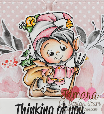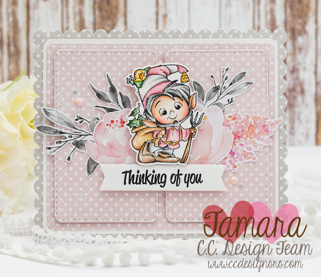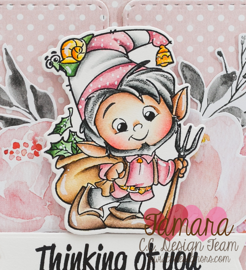 Tamara here with you with a new C. C. Designs card featuring Gnome friends clear stamp set. Image was coloured up using Distress ink pads and come colouring pencils and then cut out using matching Outline dies.