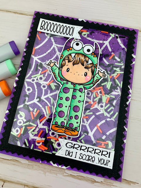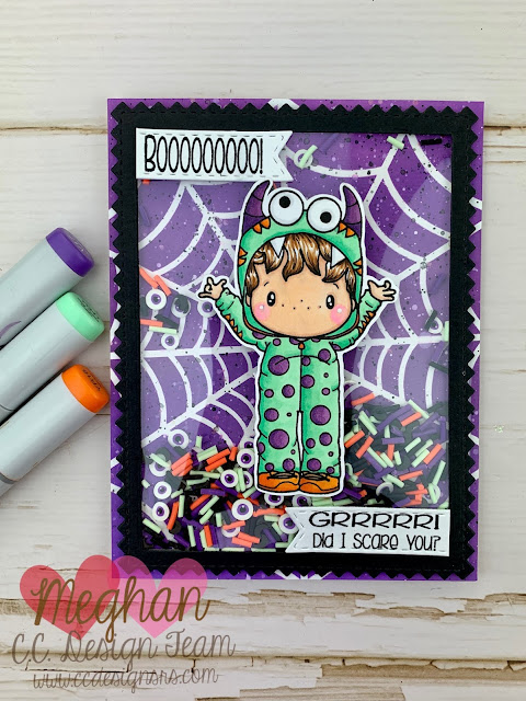 I am sharing a MONSTER Shaker card with you today, featuring the C.C Designs Monster Swissie set that was just released this month! These little Eyeball Candy sprinkles match him perfectly. He is TOO CUTE to SPOOK!