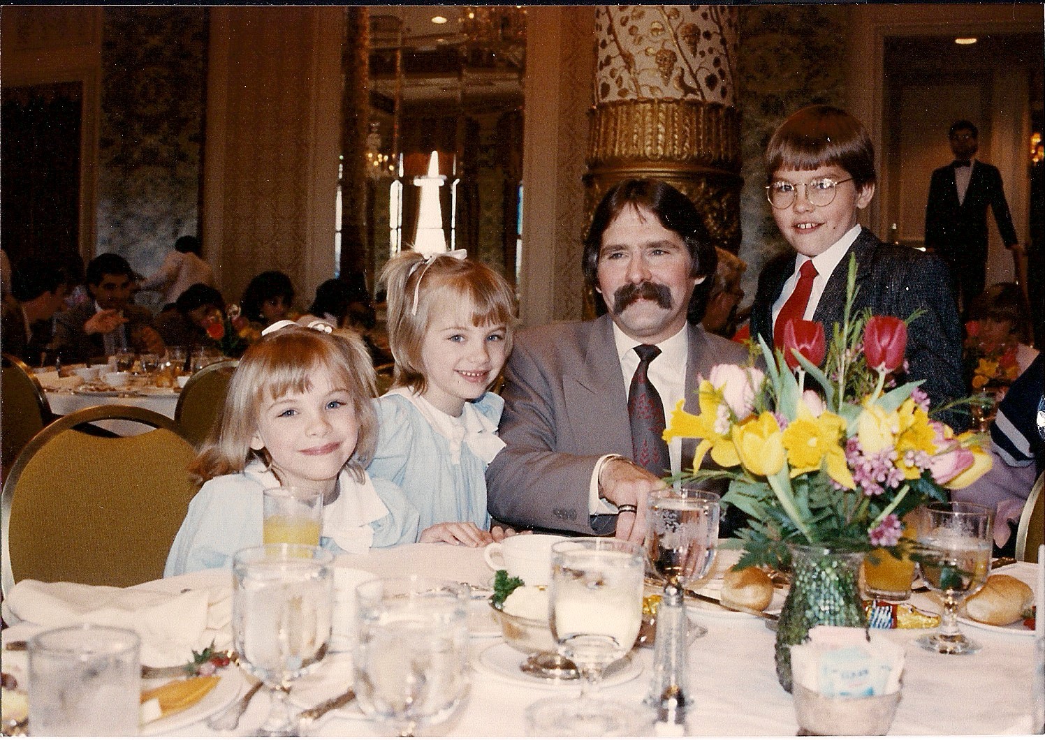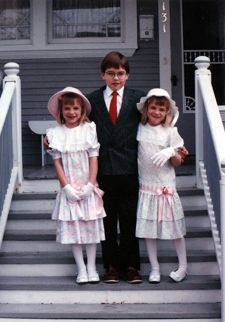 Do you ever notice that all Easter cards are girly? Flowers, pinks, cutesy bunnies, and chicks? What about the guys we want to make Easter cards for? C.C Designs has your solution with these HANDSOME Lumber Bunnies. I am in love with the Lumber Bunny Stamp Set and the fun sentiments for the guys! See my family's Easter pics below, we used to go to the John Hancock Building for Easter Brunch every year (see below).