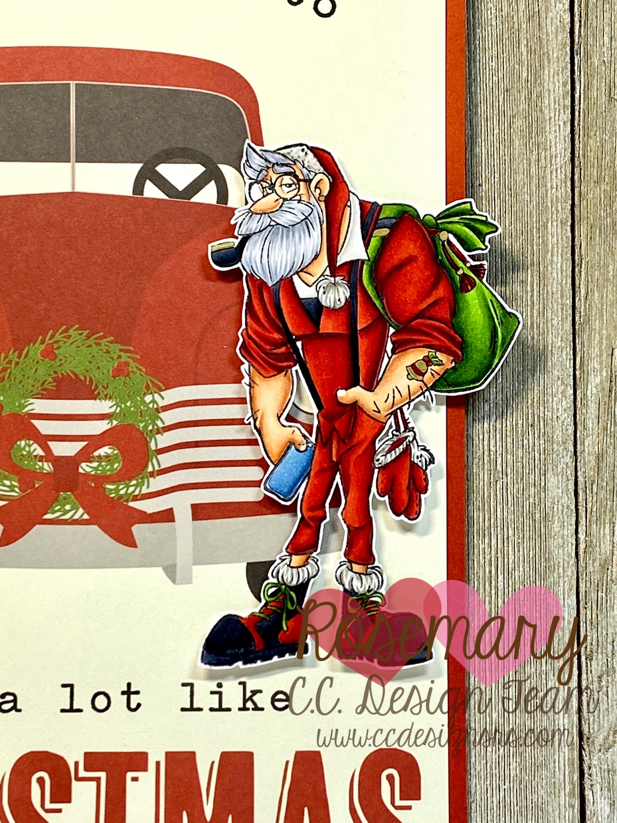 I knew when I saw him that he needed a red truck instead of a sled. I came across the perfect paper to pair with this fabulous Santa! The truck paper is from Simple Stories Very Merry 6x8 Paper Pad. Isn't it awesome?!