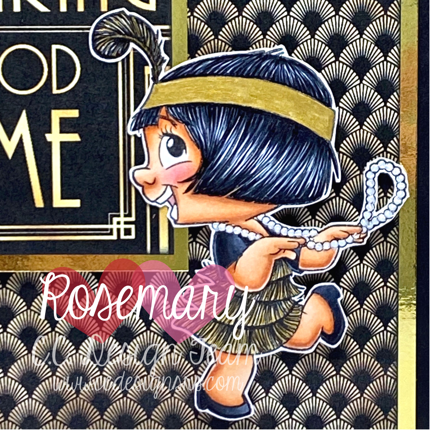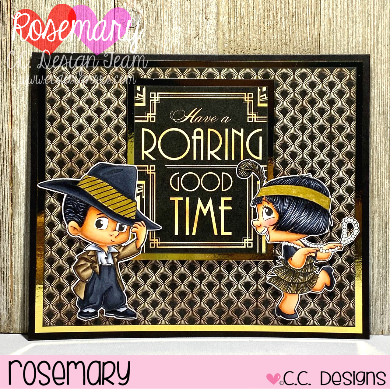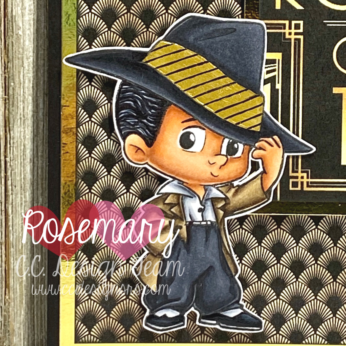 My card features characters from two different stamp sets. Since it's 2020, we needed some Roaring 20s stamp sets, and boy did C.C. Designs deliver! On Thursday, there will be a 20s Gals Clear Stamp Set featuring 3 flapper style girls with 4 different sentiments, and a 20s Guys Clear Stamp Set featuring 3 handsome boys with 4 different sentiments. Check out the cuties I picked for my card.