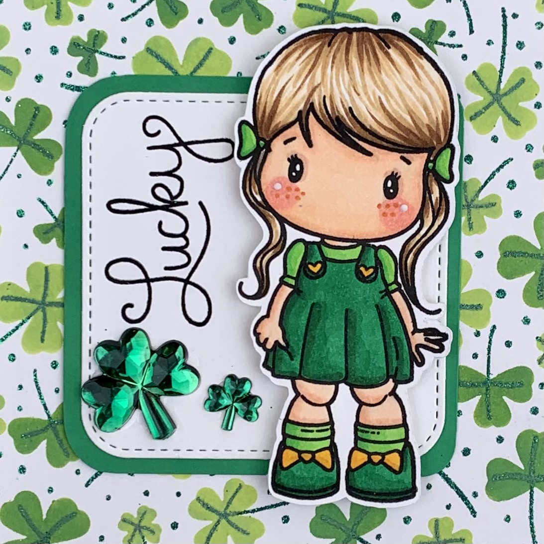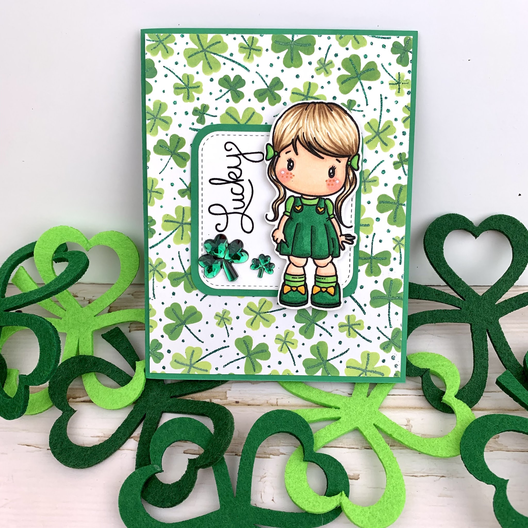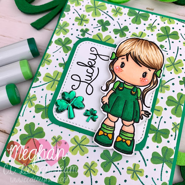 Are you ready for St. Patrick's Day? I am! My brother lives in Dublin, Ireland and I am Irish through and through. I made this cute St. Patrick's Day card using the C.C Designs NEW Dot Swissie stamp to show you that she can be used for many different holidays and themes, not just as Dorothy from the Wizard of Oz.