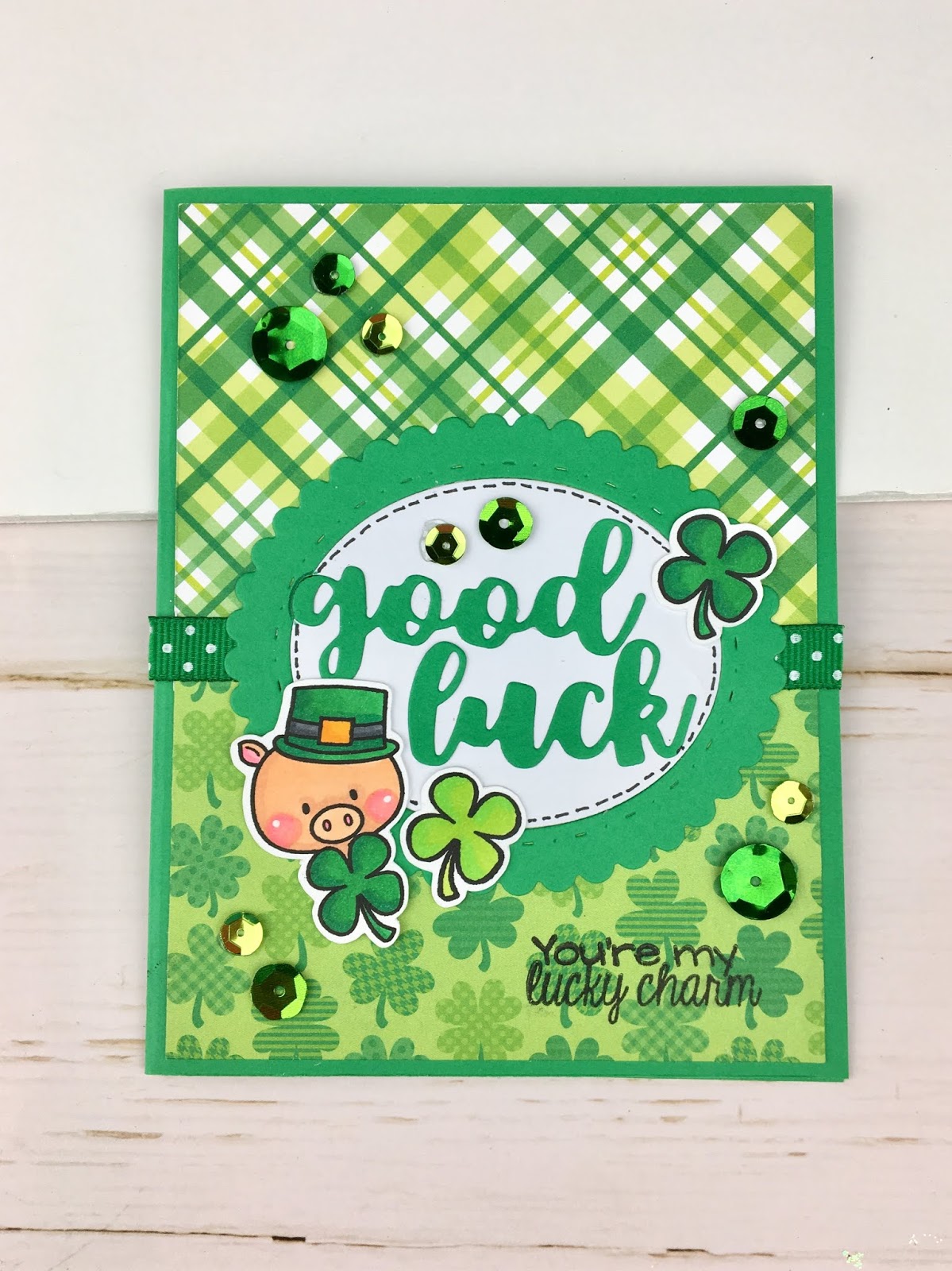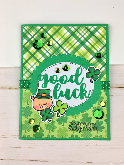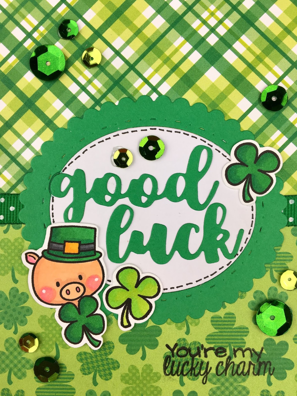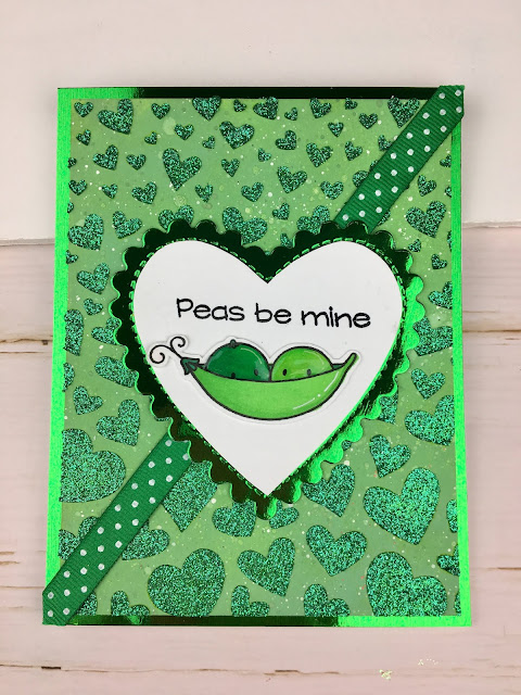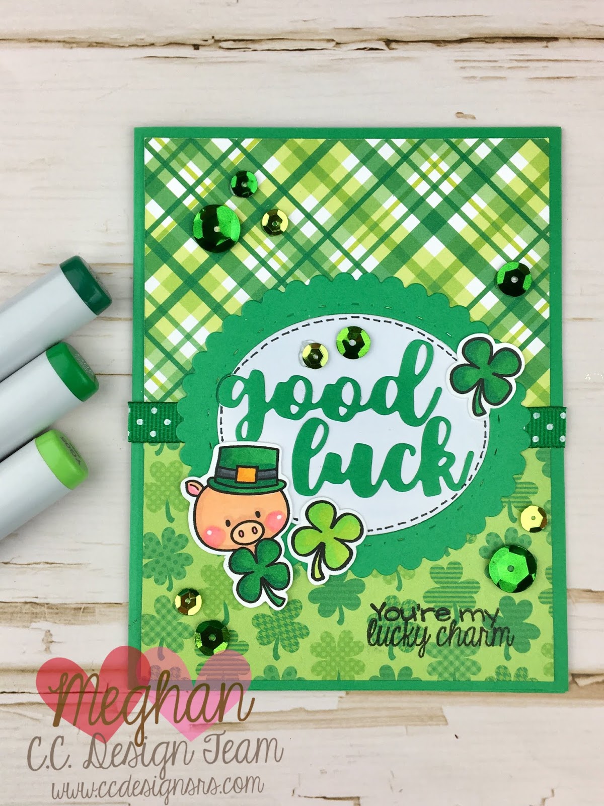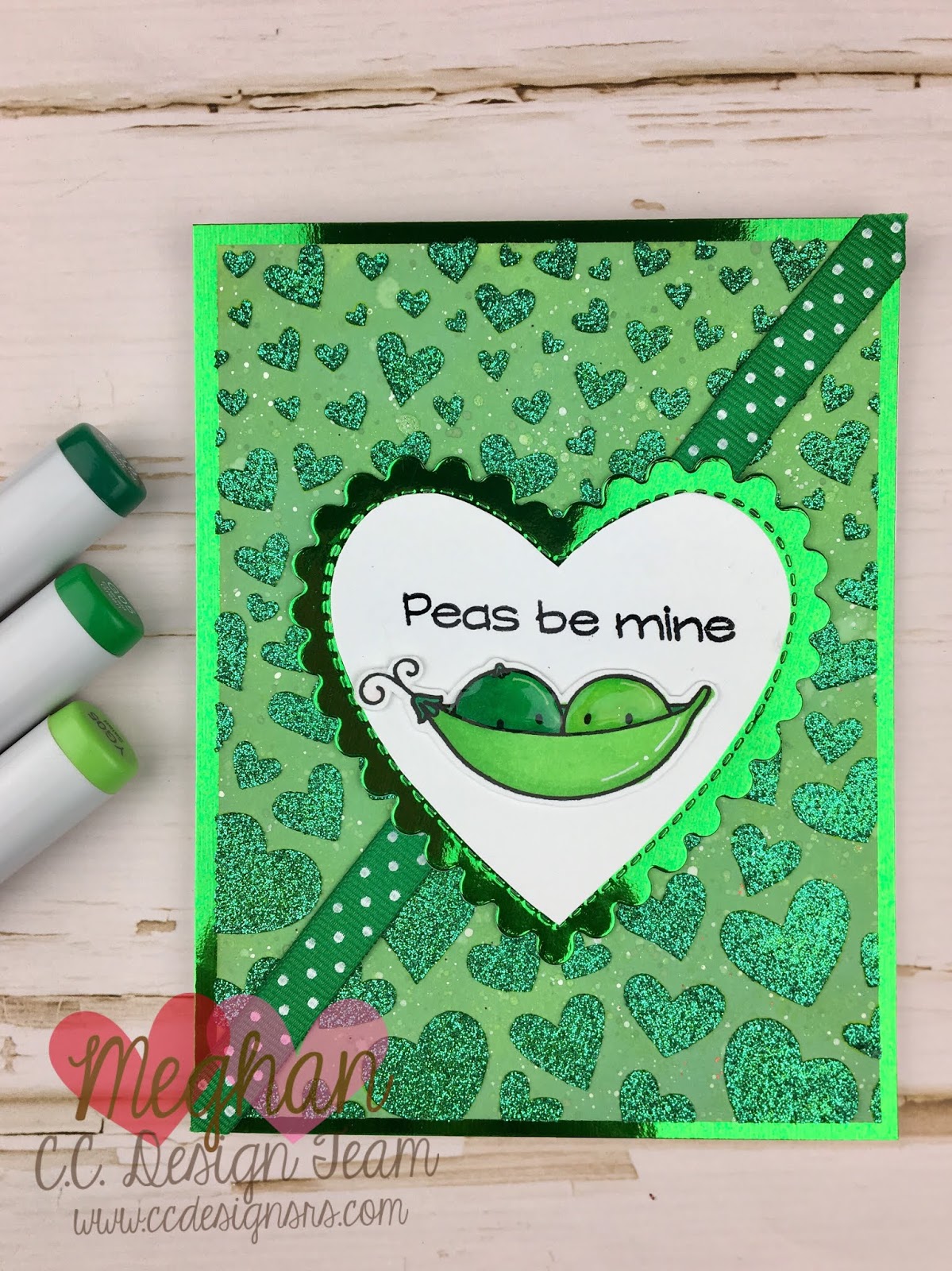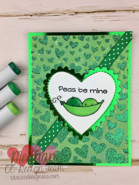 I got in a GREEN mood when creating cards using the NEW C.C Designs February Release Stamp set called February & March. There are CUTE little icons for EVERY Holiday in February & March. I'm Irish and an identical twin so I LOVE the little peas (reminds me of me and my sister) and the St. Patrick's Day pigs.
